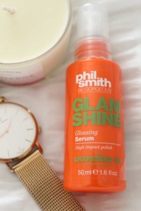 I prefer wearing my hair in a pony tail which, considering i had it cut above shoulder length not too long ago, is a nightmare!! Having tried all sorts to keep the whispy bits of hair out of the way and also to stop the hairs snapping I have finally found something that works, Phil Smiths Glam Shine. It adds a decent amount of shine to my hair without it looking greasy and seems to keep everything in place while held in a ponytail. rrp £2.50
