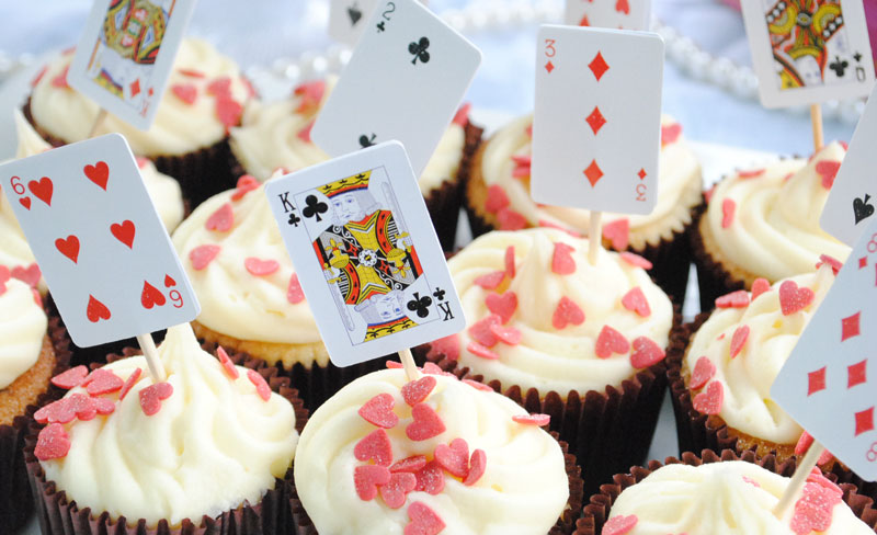 The garden was decked (get it!) with large playing cards, strung and pinned so that it looked like bunting.