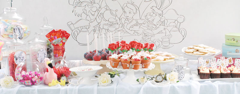I layered up the bottom two shelves with little nicnacs that symbolised the day and made everyone smile including the little picture frame with all the sketched images of the Alice in Wonderland original pictures.