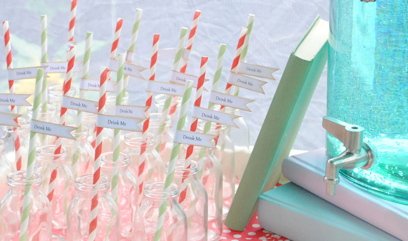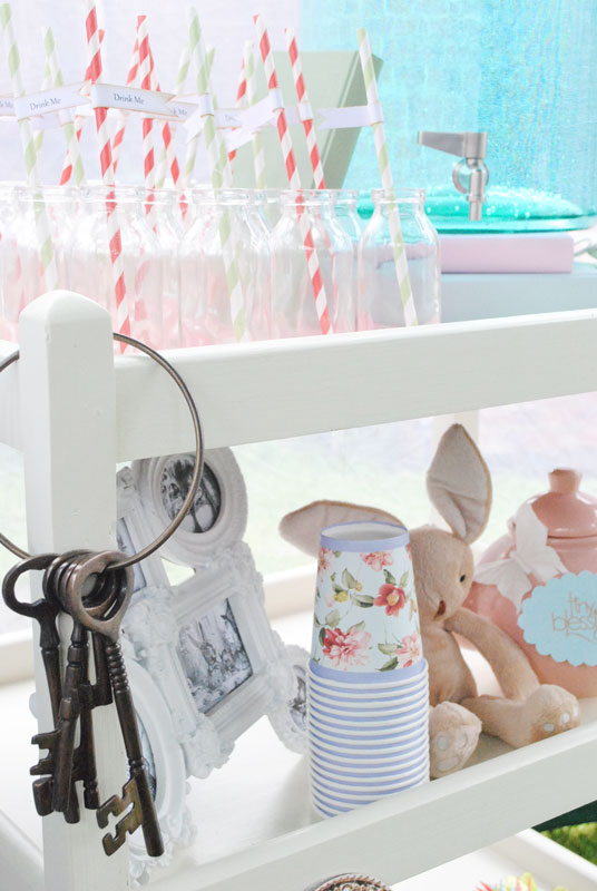 I took the hostess trolley with me that I made over earlier in the month and used this to hold the mini milk bottles and drink dispenser. The gorgeous blue colour was made from LOTS of lemonade and 2 bottles of blue alchopop! The girls all loved it – it was even weak enough for the mums to have a little! ๐ *click to see larger pic of the ‘drink me’ straws*
