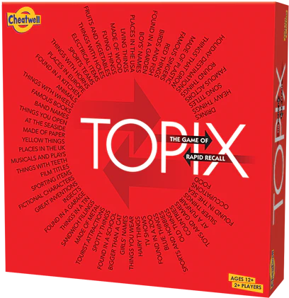 The Top Ten Naming Game! A riotous race to call out possible solutions to a given subject… but only answers matching the 10 on the card will score! Fast and frustrating but fantastic fun for everyone! Great for involving different generations, this version includes cards that are appropriate for players as young as 8 years old. Can you handle the Tension? 400 topics make this a perfect thinking game for both children and adults. The unique Tension score slider makes marking down the shout-outs so easy. Sounds simple but you have to get the exact 10 on the card. Rrp