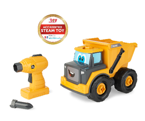 The John Deere Build a Yellow Dump Truck is a 2-in-1 toy that provides endless fun for your little one! This 13-piece construction toy can be assembled and disassembled using a battery-powered drill, great for encouraging problem-solving skills. The chunky parts are easy for little hands to manoeuvre, and the dump truck also features a working dump bed for hauling treasures. The toy comes with batteries pre-installed and is an officially licensed John Deere product. It has received both STEAM Accreditation by the Toy Association and a Good Toy Guide Recommendation.