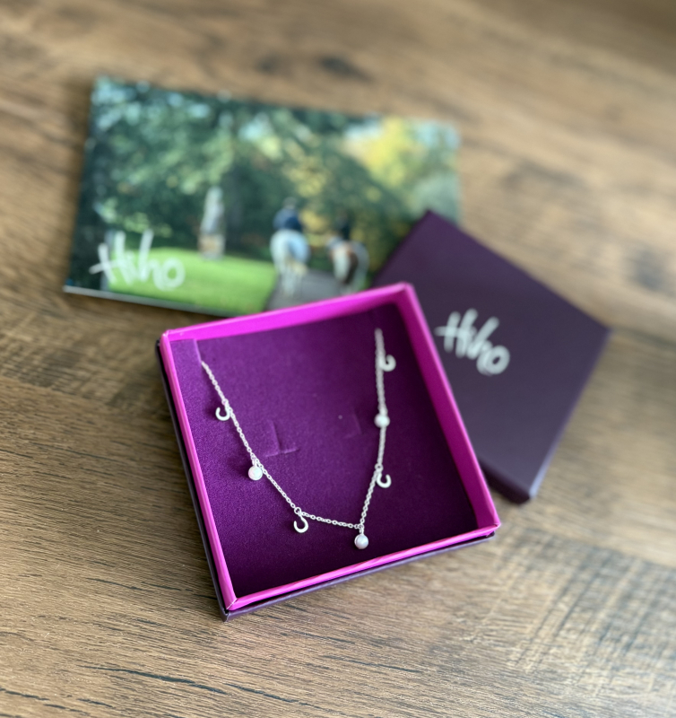 First up is a stunning necklace from the “Dinky” range from Hiho Silver. They have proven very popular, the necklace length adjustable from 16 to 18 inches. This is a new Hiho exclusive design with wonderful pearls interspersed with shining silver horse shoes all set intermittently on a strong solid silver chain. The round cultured pearls are set into a surround of silver and the whole necklace with its great price and flexibility is a great addition to the Hiho stable.