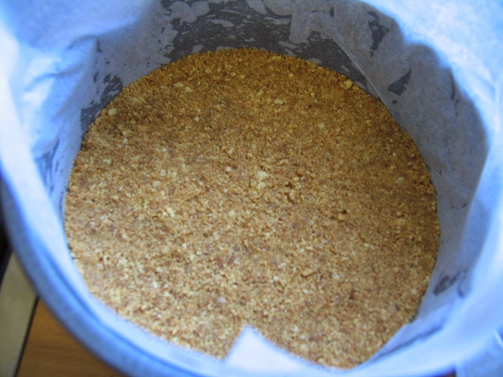 2. ? Press into a 9 inch tin and refridgerate while you prepare the rest of the cake.