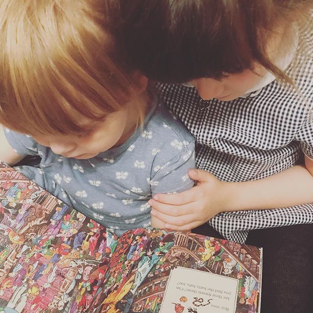 Since the switch in seasons was so apparent last week we thought it was time for a change in the girls reading and activity books at home. Out came the Halloween and Autumn inspired books and the girls loved the new addition! It is a seek and find book that tells the tale of what children find while they are out trick or treating. I love the fact the girls can share something as simple as a book and take turns to find the hidden objects. This for me is a true meaning of together!