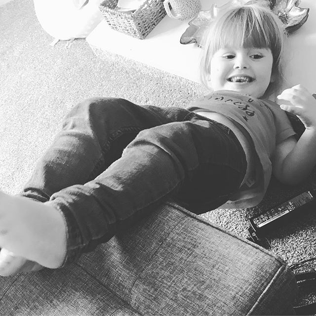 Tired of all the papers, pens and pieces of games the girls keep leaving around the living room I bought a storage box which doubles up as a foot stool – practicality and all that! I was sitting with my feet up and Amelia wanted to do the same but was too far away for her little legs to reach from the sofa…