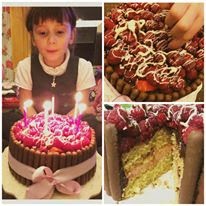 Shes growing up way too quick, most little girls want a princess castle cake or their favourite cartoon character….Evie wanted a ‘giant chocolate finger cake with chocolate covered strawberries and raspberries please mummy’. ?