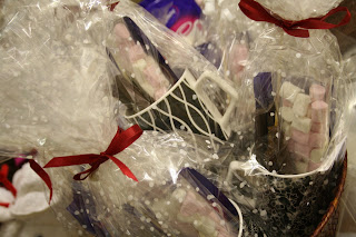 I have also made 6 of these chocolate sets – fine china mug, hot chocolate sachet, chocolate finger biscuits, marshmallows and a sugar stiring stick from Whittards of Chelsea 🙂