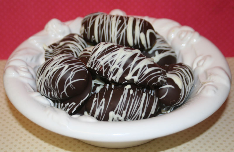 Cut small squares and place one piece of fruit in the centre. Wrap up the sides and make sure there is no fruit showing through the marzipan, this way the chocolate wont actually touch the fruit itself (the alcohol may make the chocolate run before it sets)…