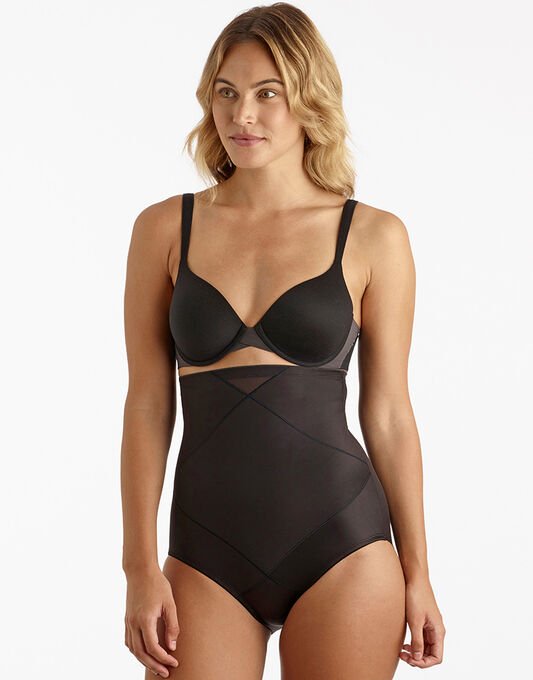 I am a huge believer in wearing the right underwear for the right situation and although I am far from comfortable wearing tight fitting dresses there are occasions when I need to suck the old tummy in a little! This extra firm control tummy tuck high rise brief from Miraclesuit is a comfortable alternative to waist control undies! They not only smooth the tummy but the criss cross seams across the upper and lower abdomen give an instant tummy tuck look. There are silicone gripper elastics on the inner rear leg openings helping them stay in place and create an invisible VPL.