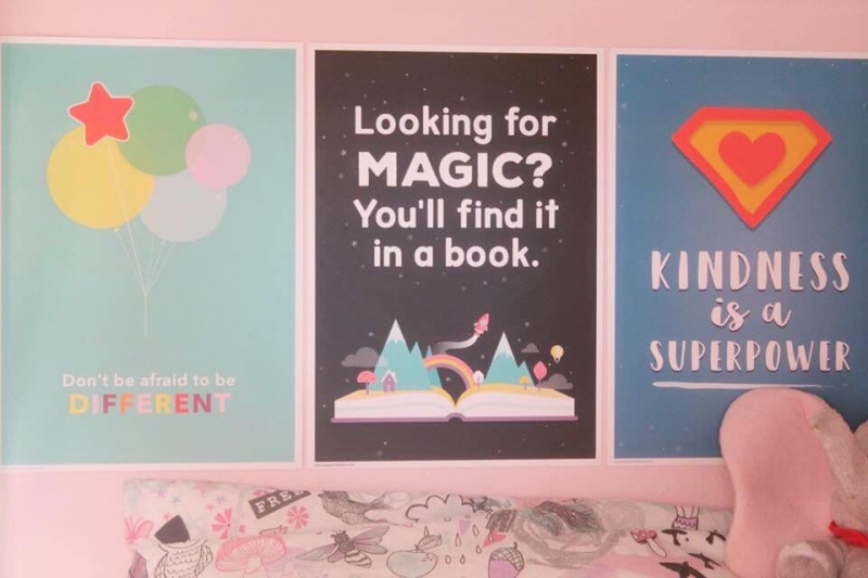I am delighted that they asked us to be part of a review, whereby I got to choose some prints for the girls bedroom wall now that we have finished decorating. As I wanted to inspire Amelia to look forward to learning I thought about all of the things I wish for her to be. Strong, inspired and a total book worm like her big sister!