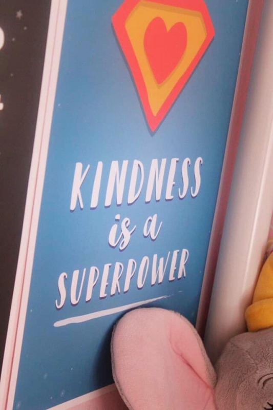 We went with one that I think is something we should teach all of our children, Kindness is a Superpower. It really is! If you can’t be anything else, at least be kind. To fellow humans, to everything around you including personal and other peoples items. Respect should be earned but also given and always treat others how you wish to be treat.