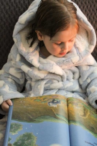 Between 8/8.30pm we tend to head up to bed and Evie loves to snuggle in her own bed to read her books, she is a real little bookworm and has a current love of the Isadora Wolf books. I love how she gets totally submerged in her books that I can be standing in front of her saying her name and it takes a good 3 or 4 attempts to get her back to reality! Amelia loves me to read her one of her books which generally tend to be Horrid Henry or Peppa Pig – as if we didn’t have enough with the tv!