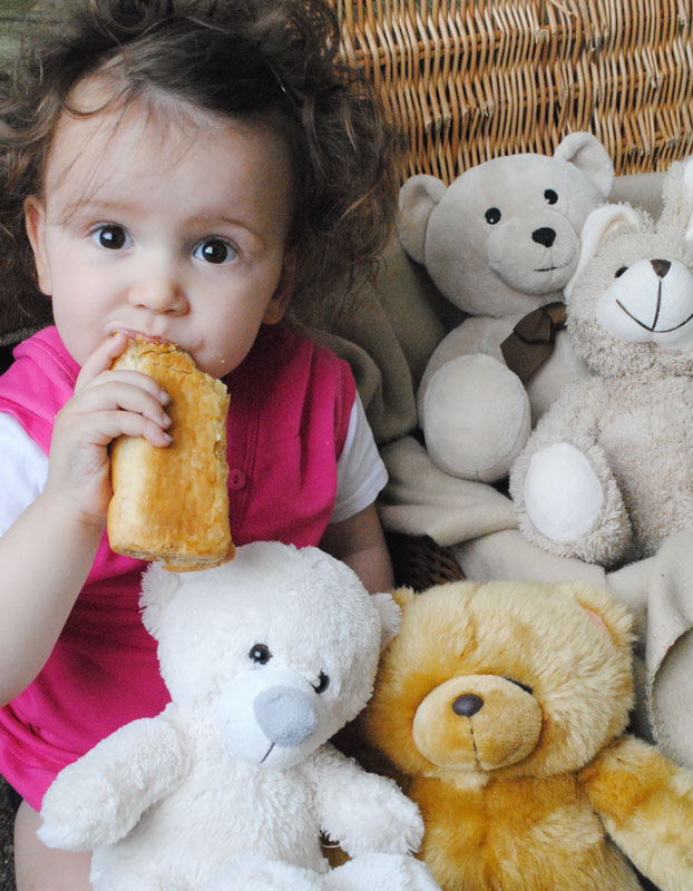 Evie loved the fact she had all the bears surrounding her and sat quite happily which munching away on a sausage roll!