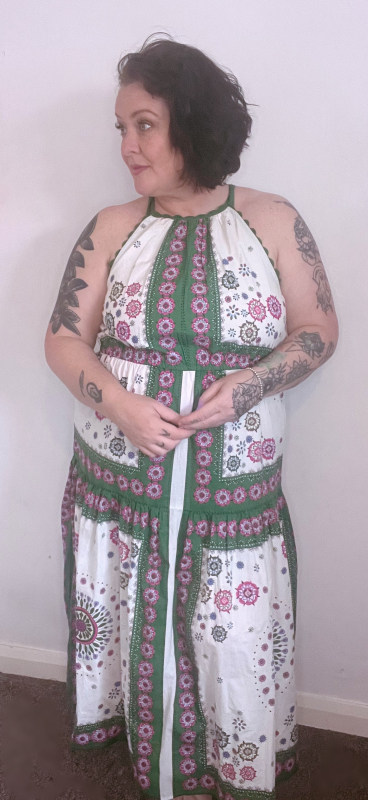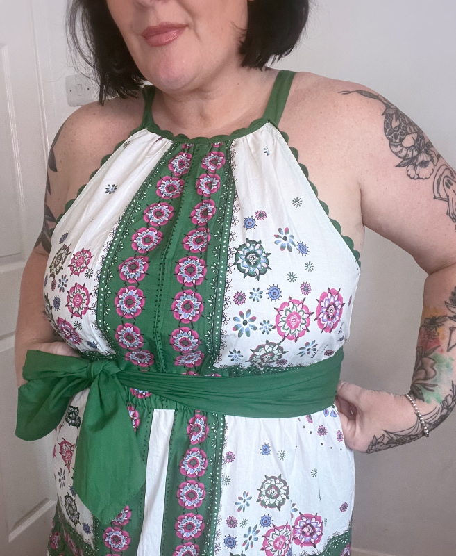 The halter neckline and tiered skirt give such a flattering fit and although I am wearing no bra with this, the way the bodice sits gives enough support. Very impressed as I think most halter dresses require a strapless bra which I hate wearing.