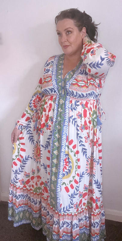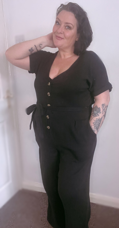 I adore this floral print jumpsuit, the colours, the fit, everything! I do have an apron tummy after having 6 children so tend to go for drop waist clothing. If I sized up the chest area would be way too baggy so I simply added some control underwear to tighten up in the places I needed.