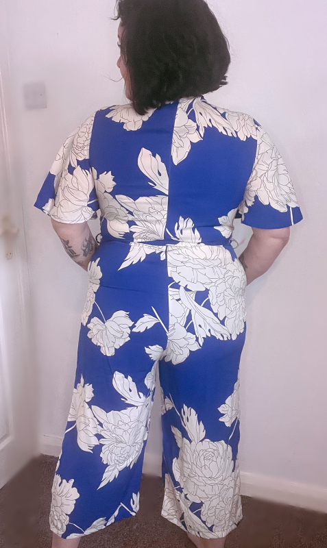 The jumpsuit hangs beautifully and has flattering frill sleeves. The suit is cut to mid length but being 5ft 1 I find it perfect and can pass it off as full length. It would look great with either heeled shoes for a night out, or trainers to dress down during the day. RRP: £42.00