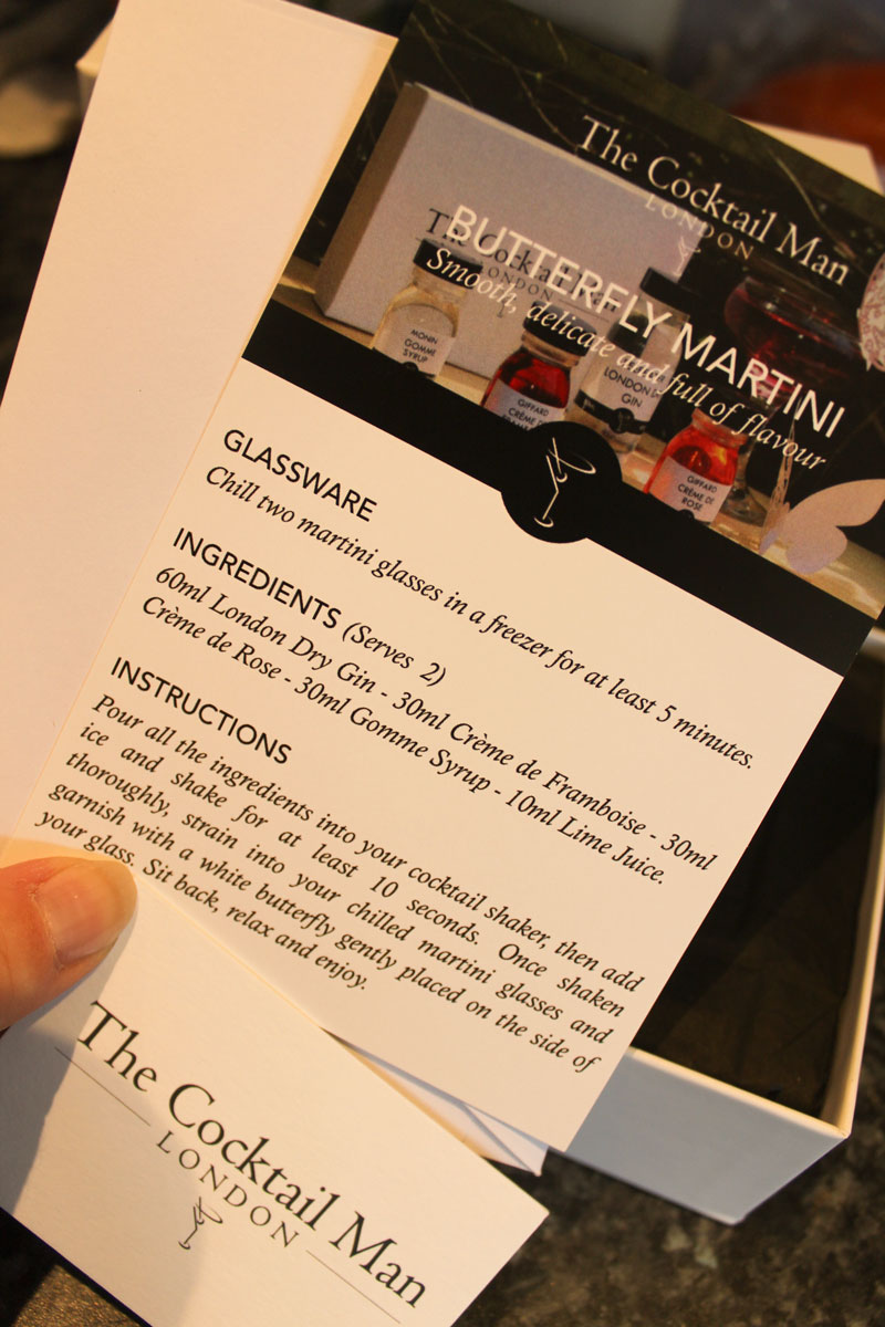 Available from NotOnTheHighstreet you can choose from multiple cocktails including Watermelon Martini to Gin Tasting Kits and even a sweet Turkish Delight flavour Butterfly Martini…which is what I received.