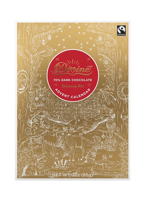 This grown up Advent calendar from Divine is the perfect choice for those who prefer the intense cocoa taste of dark chocolate, or for those avoiding dairy.