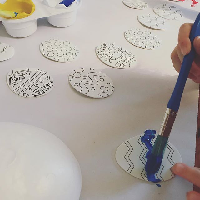 The girls love crafts so we headed on Tuesday to the shopping center to stock up on bits and pieces as the weather was looking bad for the rest of the week. We bought lots of paints, brushes, paper, Easter themed goodies to paint and make as well as some play dough and magic sand. The rest of the day was spent painting and making with 2 very happy little girls!