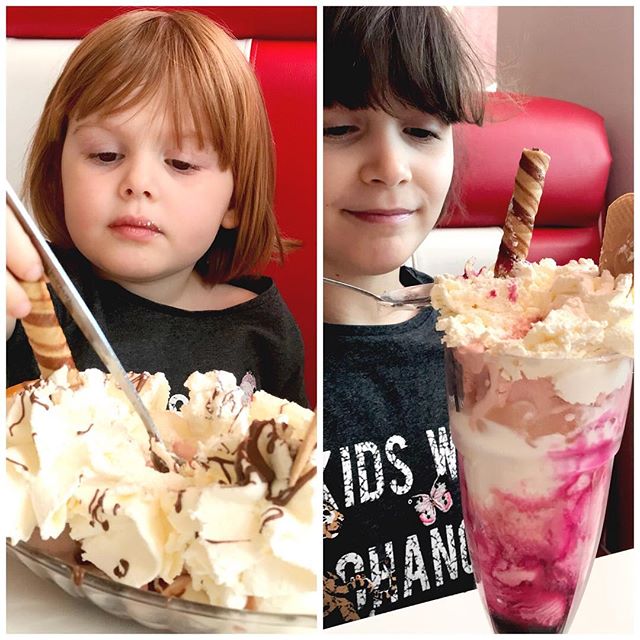 Monday I took the girls on a bus ride to the sea front and judging by the weather the rest of the week we picked the best day to go! We went with the intentions of having a quick look around the shops and then heading for ice cream sundaes at Lickity Split, Amelia chose a banana split and Evie chose Fairy Fizz which was a huge sundae glass filled with sweets, ice cream, cream, popping candy – you name it!