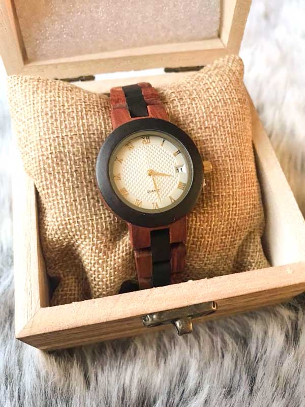 I had never heard of this before so was intrigued with how it would look and feel so set about trying to pick one that I thought would look quite feminine at the same time as being practical and able to wear with anything. After opting for the Yakwood Circle Two Tone Wooden Watch I sat back and waited for it to arrive wondering how the heck a wooden watch would feel to wear…would it be clunky and uncomfortable, would it give me splinters! Obviously my fears were unfounded when I received the parcel and saw the beautifully handcrafted watch inside.