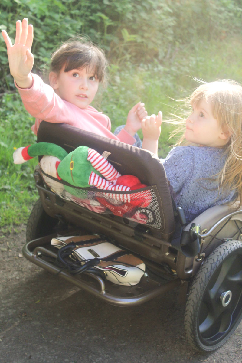 As there is space for 2 children it is good to know that there are two 5-point safety harnesses ensuring that both children are securely strapped in. Another factor that has been taking into consideration is that little fingers have a habit of trying to touch things they shouldn’t, special finger guards are in place to stop little ones trying to touch the wheels which is a huge peace of mind since the girls are behind us when walking so not in sight at all times.